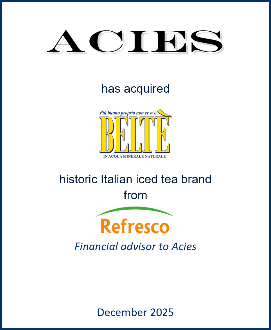 The Acies Group has finalized an agreement with Refresco for the acquisition of Beltè, a historic Italian brand active in the production of iced tea.