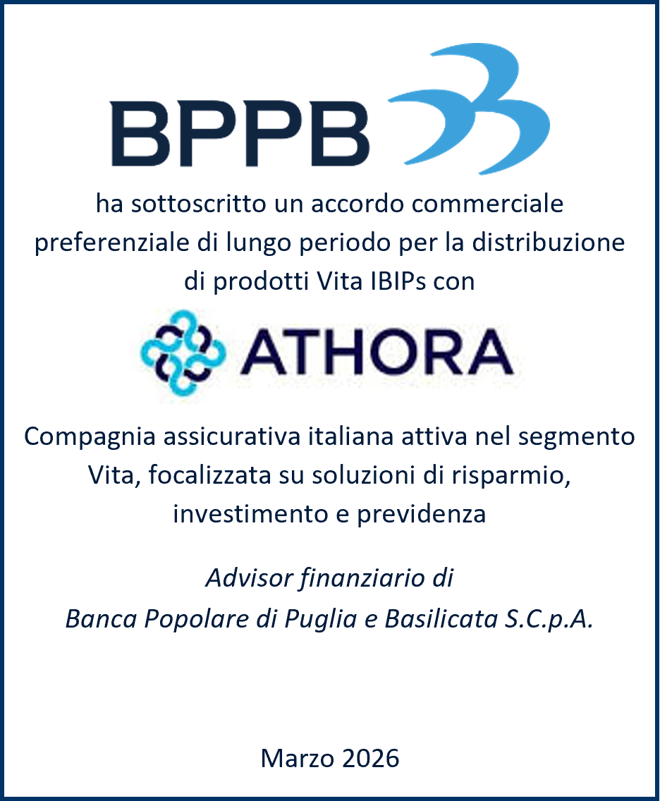 Banca Popolare di Puglia e Basilicata S.C.p.A. ha annunciato la sottoscrizione di una partnership strategica con Athora Italia S.p.A., compagnia assicurativa vita appartenente al Gruppo Athora, tra i principali operatori europei nel risparmio e investimento assicurativo e nella previdenza. L’accordo prevede una collaborazione commerciale preferenziale di lungo periodo nel comparto Vita IBIPs.