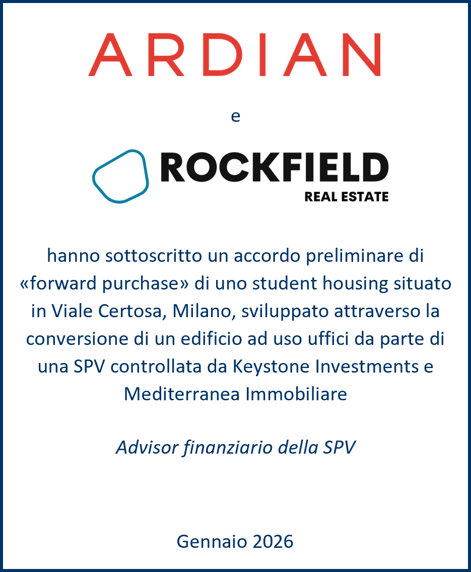 È stata inoltre strutturata un’operazione con Ardian e Rockfield, per conto di ARDIAN Rockfield European Student Accommodation Platform, attraverso la quale acquisteranno l’asset.